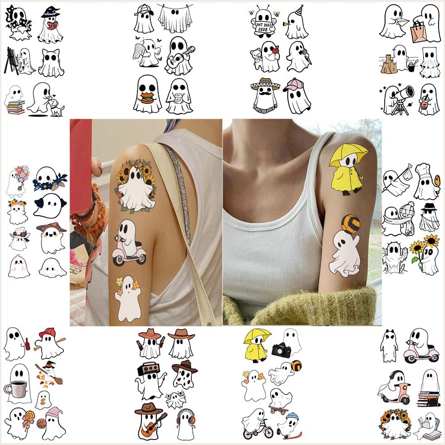 Halloween Ghost Temporary Tattoos - 10 Sheets for Kids