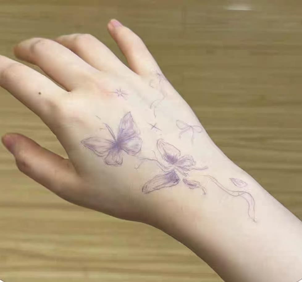 Purple Butterfly Waterproof Tattoo | Non-Reflective Body Art Q31