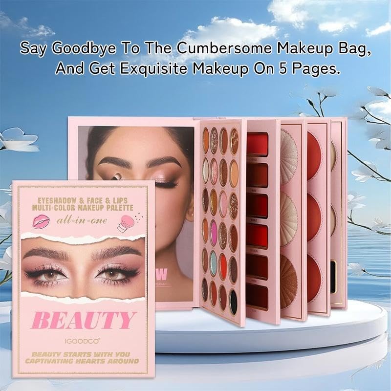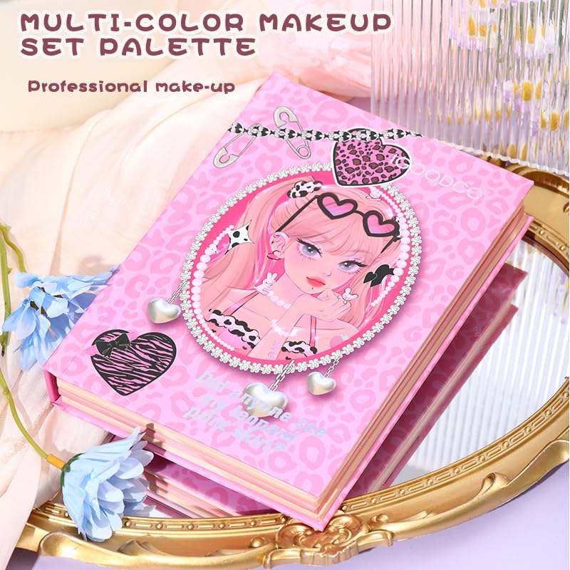 55-Color Glitter Pink Sequin Eyeshadow Palette & Makeup Set