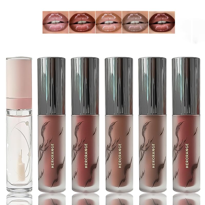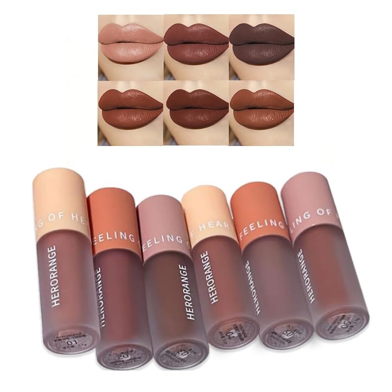 Matte Lip Gloss Set - 6pc Brown Nude Long-Lasting Lipstick
