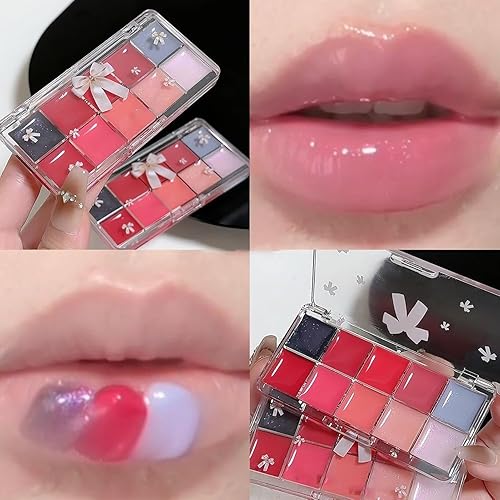 10 Color Jelly Lip Gloss Palette - Long Lasting & Bright(10 colors-A,1 Ounce (Pack of 1))