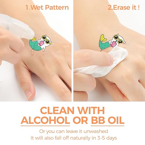 Individually Wrapped Waterproof Tattoos for Kids - Simply place the child's temporary tattoo on the skin, soak it in water and wait 15 seconds. It can be cleaned using alcohol and BB oil, and kids tattoos last about 4-6 days.