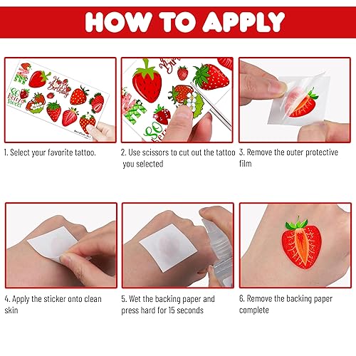 Pattern rich: Berry First Strawberry Cute Sweet One Red Fruit Temporary Tattoos include 10 Sheets 105 PCS, the size of each sheet is 6.1 * 3.1 inches. Easy to share,even if a lot of people's parties, you can have a different tattoo with others.These adorable tattoos will keep you and your little ones – and their friends – occupied for a while.