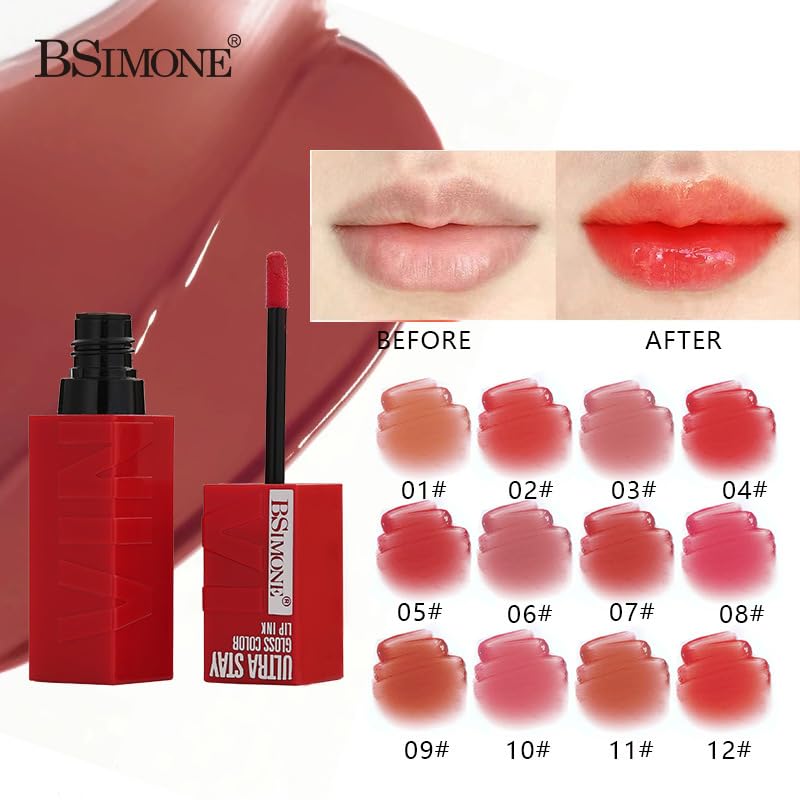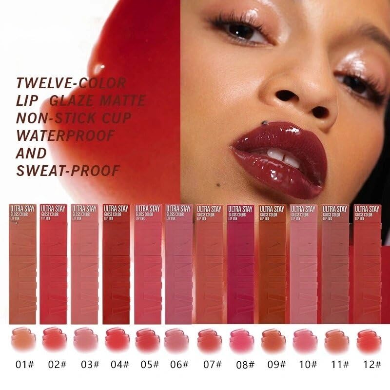 12 Color Hydrating Lip Glaze - Moisturizing Lip Gloss & Lipstick(12,1 Ounce (Pack of 1))