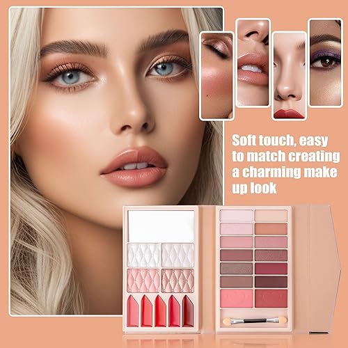 COMPLETE SET: All-in-one makeup palette featuring 12 eyeshadow shades, 4 highlighter/blush colors, and 5 lip colors in a sleek, portable design
