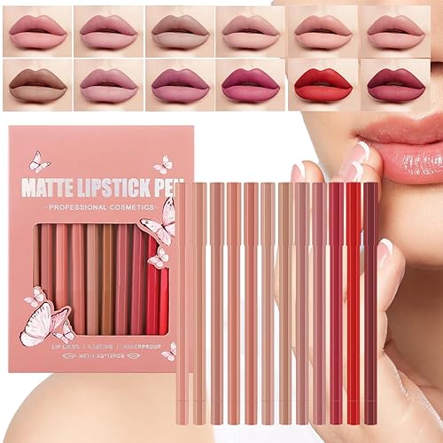 12 Pcs Matte Lip Liner Set - Waterproof Long-Lasting