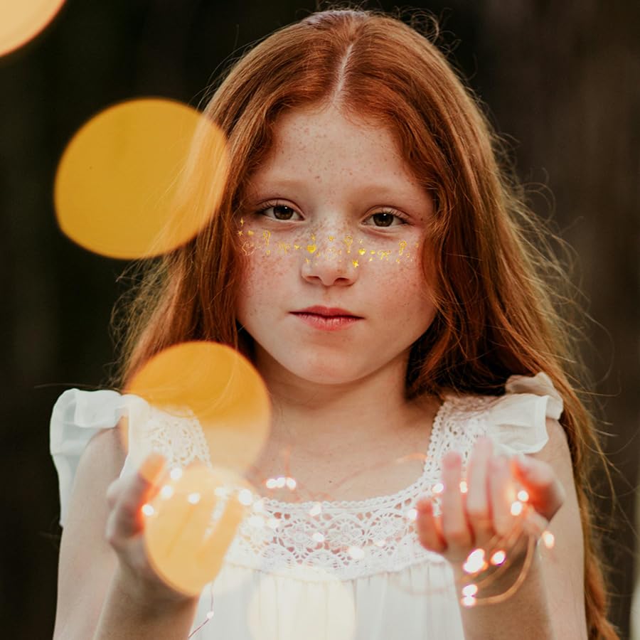 What You Get: Includes 12 sheets of gold glitter freckles temporary tattoos, designed with a sparkling Halloween theme. A fun and creative way to dress up for Halloween parties and events.