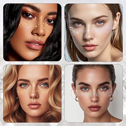 【Long-lasting & Waterproof】Our face glitter freckles feature with waterproof and sweat-proof, whether you are at a festival,party or beach,these fake freckles will stay in place and and maintain the original color.Let you shine for a long time!