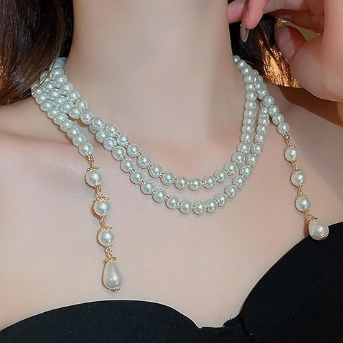 1920s Vintage Pearl Necklace with Rhinestones - Gold & Gray(Gold)
