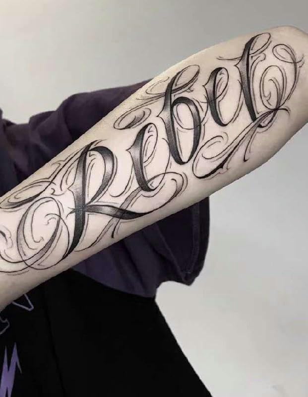 2-Pack Rebel English Letter Temporary Tattoos - Herbal & Semi-Permanent