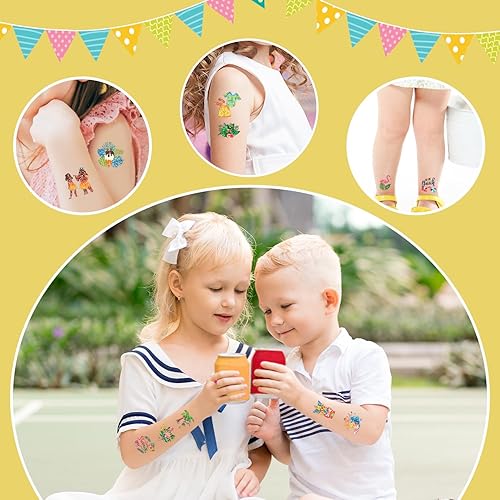 【204 Individually Wrapped Cut Tattoos】Partywind luau temp tattoos are individually wrapped cut, they are easy to carry and can be distributed to everyone individually. There are 204 different patterns in a set, which means that every kid at the party can get 1 or more glitter tattoos. No need to use scissors and this keeps the children safe while they play.