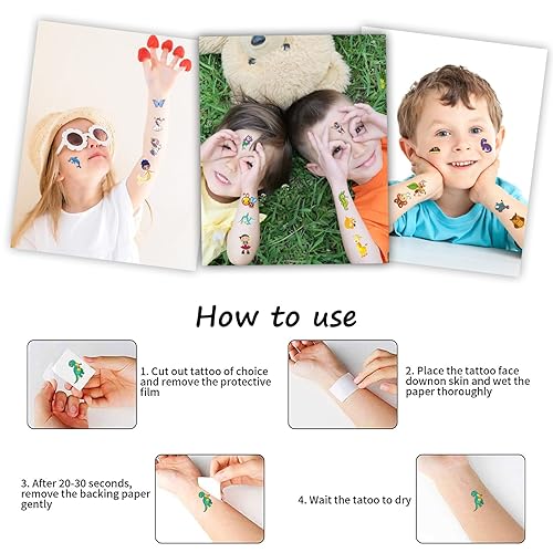 Waterproof and Easy to Use and Remove: Temporary kids tattoos sticker last long for 3-5 days, depends on how often the tattoo is scrubbed with soap and water. They can easily peel and glue and leave no traces. It can also be easily removed with olive oil or soap