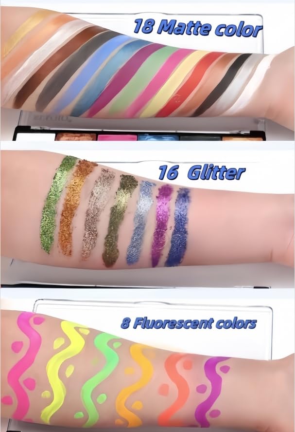 -**Facial Painting Set **: Our facial painting set includes 42 colors and a 1PC nylon brush, making it perfect for various occasions, from birthday parties to holiday gatherings.