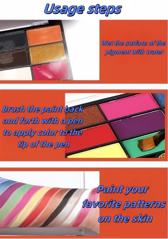 -**Professional Quality**: Whether you are a beginner or a professional, our facial painting kit is suitable for painting events, birthday parties, or holiday gatherings. It can turn a face into a beautiful artwork.