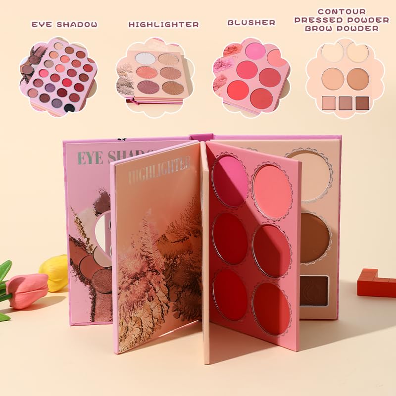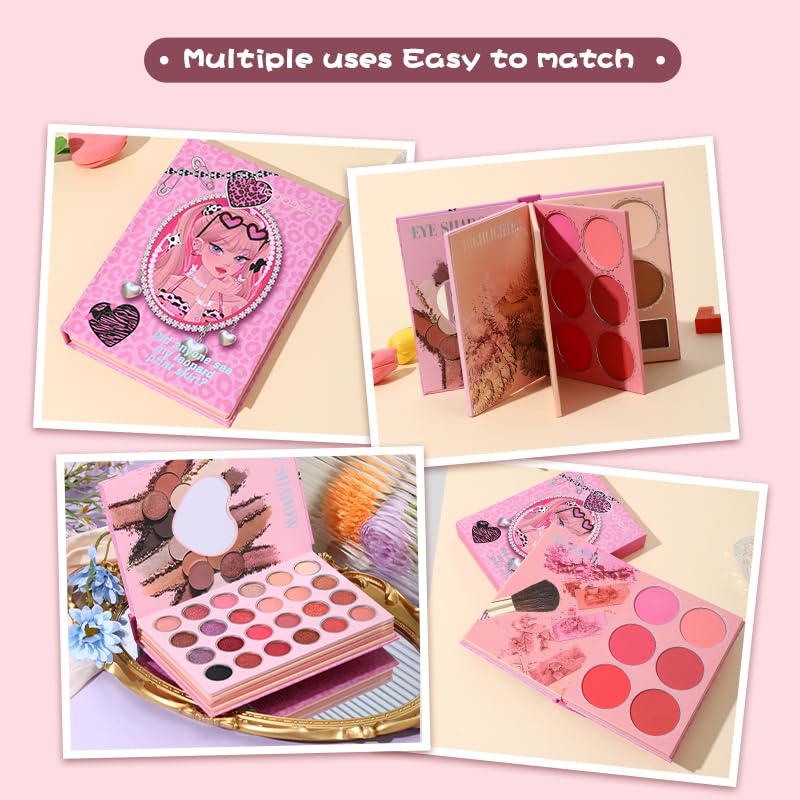 All in one: This large color palette has 43 colors, including eye shadow, highlighter, powder blusher and contour, and a variety of colors are available, from soft earth color to bright color, from matte to shiny.