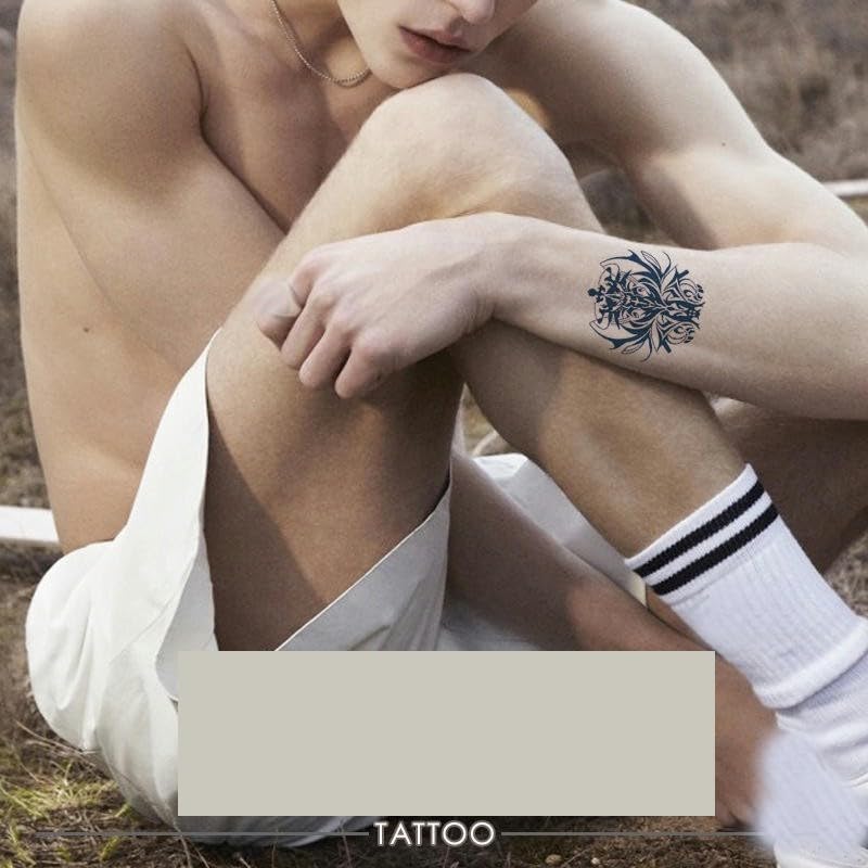 How to use: Simply place the fake tattoo sticker on your skin and hold it with a wet sponge for about 15 seconds, then remove! The color will appear lighter at first but will gradually darken over 24-48 hours.