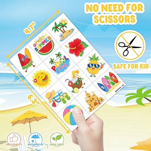Creative and Fun: This Hello Summer Beach Swimming Pool Hawaiian Luau Hawaii Tropical Pre-Cut temporary tattoos set includes a variety of playful and cute designs, encouraging your child's imagination and creativity. Bring nonstop joy to the whole birthday or party. Make your kids receive full of expectation and exploration in every festival.