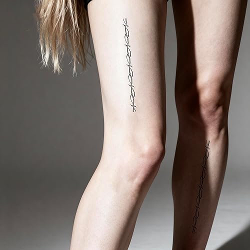 PRODUCT SPECIFICATIONS: This pack includes 8 high-quality barbed wire temporary tattoos in 4 distinct thorn and vine designs (2 of each). Each armband tattoo measures 1.2" x 13.3", perfect for wrapping around biceps, arms, legs, or ankles.