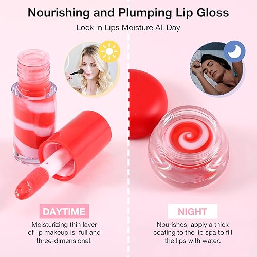 Lip Glow Oil Lip Balm Set: You will get 2-piece lip care consisting of lip mask & lip oil. Not sticky or caked, you can apply more layers before bed for a more hydrating effect