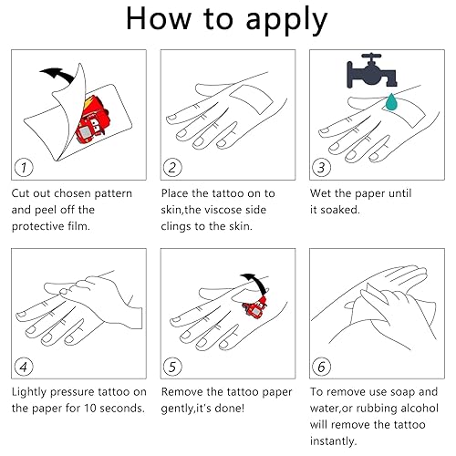 【Easy to Use】 Choose the one you like, and then face down on skin, wet the temp tattoo with water and wait for 10 seconds. Then gently tear off the white surface. You will get a Cars tattoo!