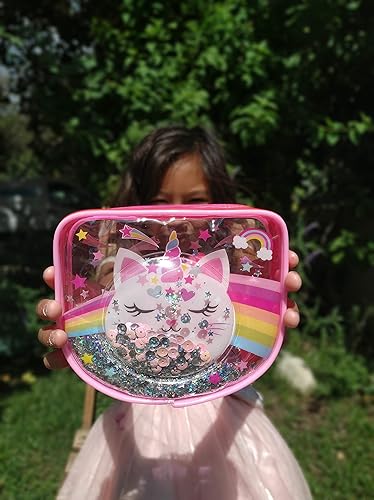 Loose Confetti Cosmetic Bags - A 5.50 x 4.50 x 1.00 inches rainbow caticorn clear pouch for easier view and access with a pink zipper plenty of storage for all cosmetic items. Transparent pouch is new trend and requirement for some special event.