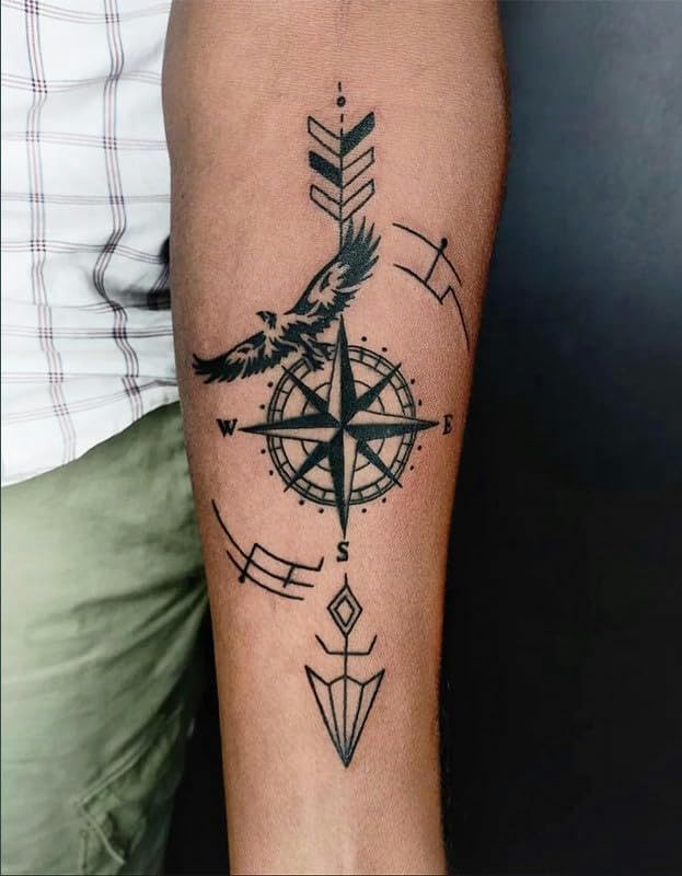 Compass Eagle Herbal Tattoo Stickers - 2 Pack Waterproof