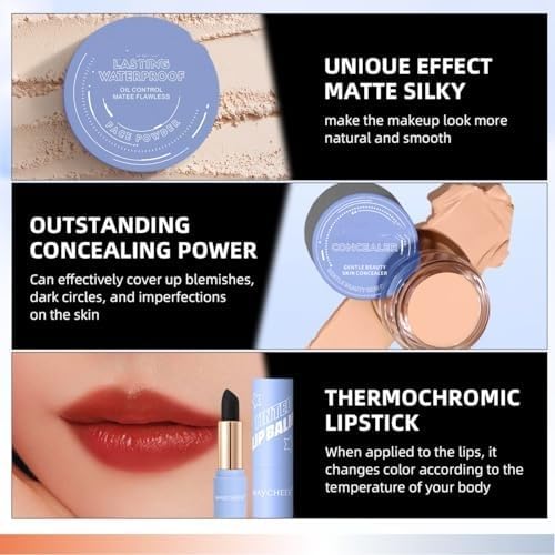 MAKEUP KIT: Makeup set include Lipstick, Eyeliner, Lip Glaze, Mascara, Eyebrow Pencil, Liquid Foundation, Powder Concealer, The most sweetest present for your beloved. Makeup set in one elegant box