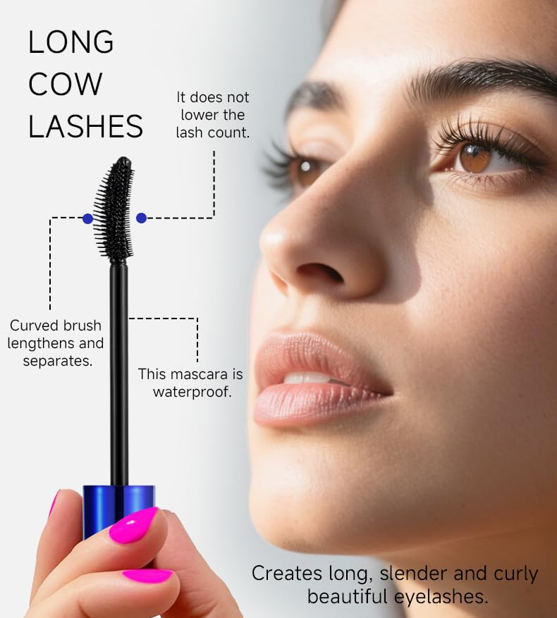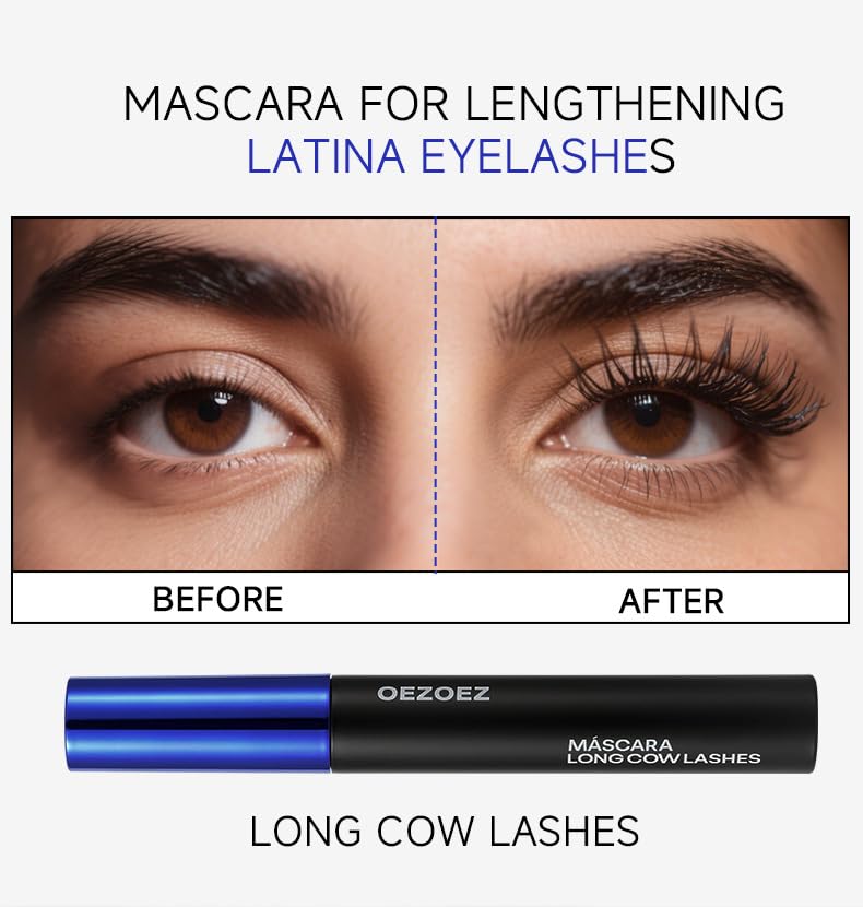 LONG COW LASHES MASCARA. Formulated for Latina lashes: straight and thin. Flaunt flawless, cow-like lashes—visibly longer and smudge-free. This waterproof mascara nourishes and strengthens your lashes with nutrient-rich oils and vitamin E