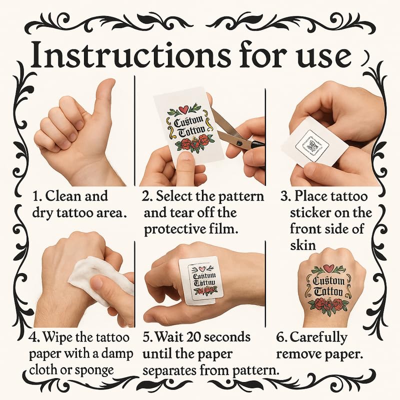 SKIN-SAFE AND EASY TO USE: Printed with skin-safe ink, our custom tattoos are quick to apply with water and come off easily with soap or oil.