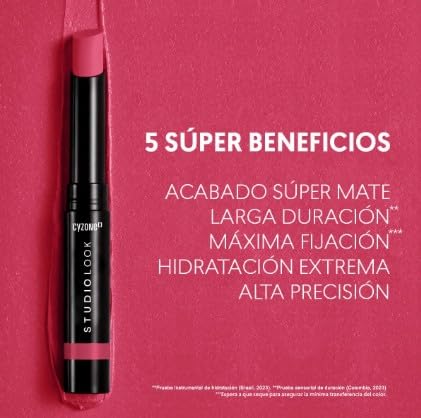 Get a stunning look with Studio Look's Supermatte Lipstick! With 5 super benefits you'll love: A super matte finish for soft lips, long-lasting, extreme hydration for up to 24 hours (*), maximum hold (**), and precision with its slim, thin-tip format. Try it with all your looks!