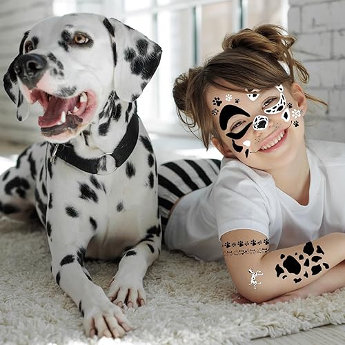Halloween Face Tattoos: You will get 4 sheets Dalmatian Face Tattoos for Kids Adults, in 4 different designs. Our Dalmatian Face Stickers are most suitable for festival, Halloween, or Christmas.