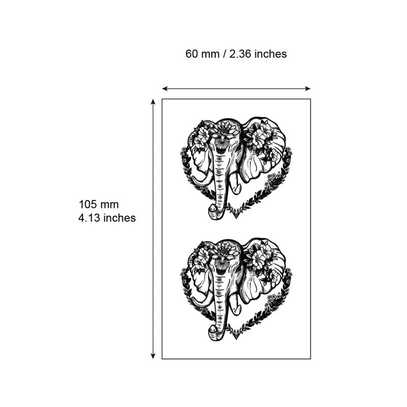 Elephant Temporary Tattoos - Vintage Floral Body Art Set of 5
