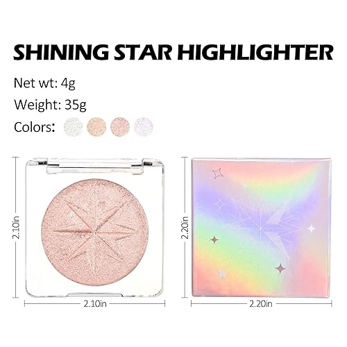 【Natural & Long lasting】The highlighter powder is easy to apply and color. Create an instantly glowing complexion & a perfectly even skin tone. Highlight features & blur imperfections. Lasting and shining all day long.