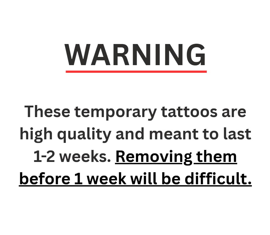 SEMI-PERMANENT: Long-lasting temporary tattoo transfers that maintain their appearance through regular daily activities while being completely removable. Last