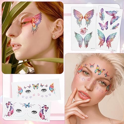 Variety of Butterfly Style: Our butterfly temporary tattoos for women come in 20 sheets, each featuring different butterfly wing patterns. These versatile designs can be applied to your face, neck, or anywhere on your body, allowing you to show off your unique personality and create the popular butterfly makeup look that's trending .