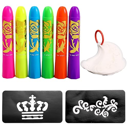 Glow Face & Body Paint Pen Kit with Stencils - 6 Pens & 25 Templates