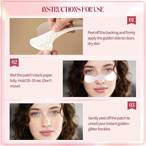 [Easy Application & Long-Lasting Sparkle Freckle Design] Achieve a stunning look in seconds! Simply peel, apply to skin, press gently with a damp cloth, and reveal beautiful glitter freckles. These waterproof and sweat-proof face glitter patches stay vibrant all day, from festivals to parties.