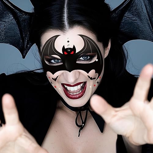 Bat Designs: Our Halloween Bat diamonds Tattoos Face Sticker with unique beautiful elements, perfect ideal combination for your bat Costume! Our bat Halloween Face Tattoo are Safe, Waterproof and last all day.