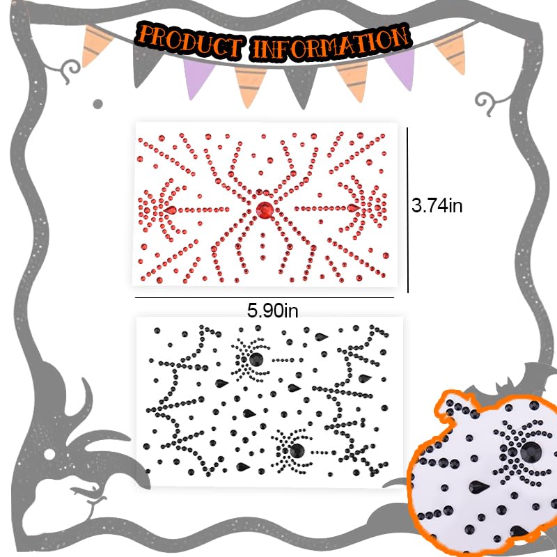 Face Gems Jewels Tattoos for Halloween: The red sticker gems for face can simulate terrifying effects such as dripping blood and scars, the rhinestone face gems can be used alone to embellish the eye or temple, adding a delicate touch, halloween makeup face stickers can also be applied over a large area to create exaggerated stage makeup effects, whether it's a cute cosplay style or a Halloween horror makeup, this set of halloween face gems jewels can be easily controlled