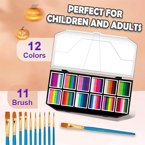 【Perfect Gift for Creative People】 body painting kit is perfect for Halloween, Carnival, Easter, Christmas, Children's Day, Cosplay, Theme Party, Music Festival, Birthday Party, Costume Party, Themed Fun Parties, School Events, Sports Competitions, etc. During the festival, you can create impressive face body paint makeup with face paints