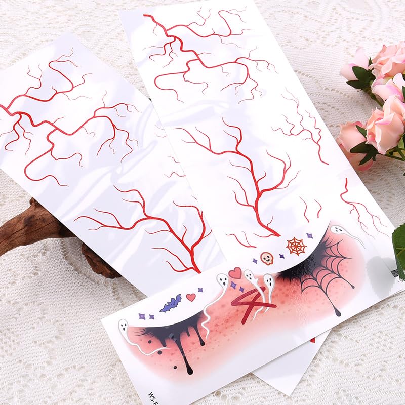 Easy To Use And Remove: Tear off the transparent sticker, place the patterned side on the skin and wet the entire halloween eye shadow stickers tattoos with water, press this halloween makeup decals to make it fit better with the skin, and finally, slowly remove the makeup halloween stickers for men women, you can wipe it clean with hot water, alcohol, or body oil