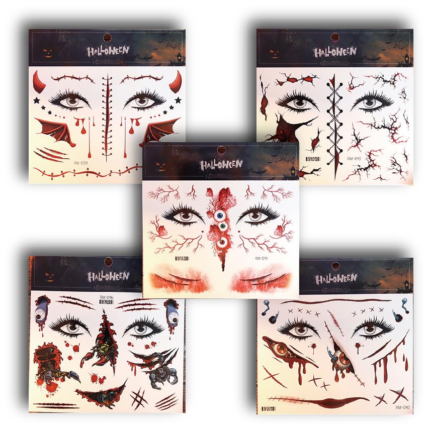 【Safe Material】This Halloween wound temperature tattoo is made of water-based paper, environmentally friendly ink, and glue, meeting the requirements of safety and non-toxic materials. These tattoos will also make you unique among the crowd;