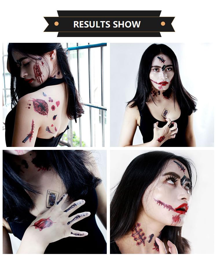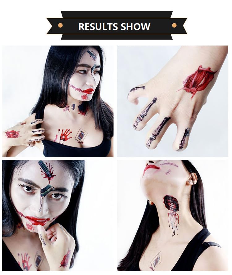 Halloween Fake Wounds & Scars Tattoos - Waterproof Makeup Props