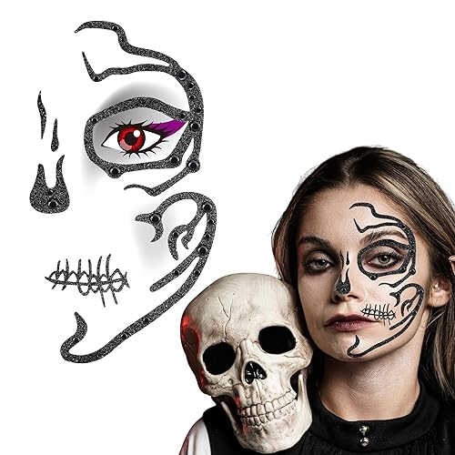 EASY APPLICATION: Premium face gems and stickers that adhere quickly and securely to create a stunning skeleton-inspired Halloween look