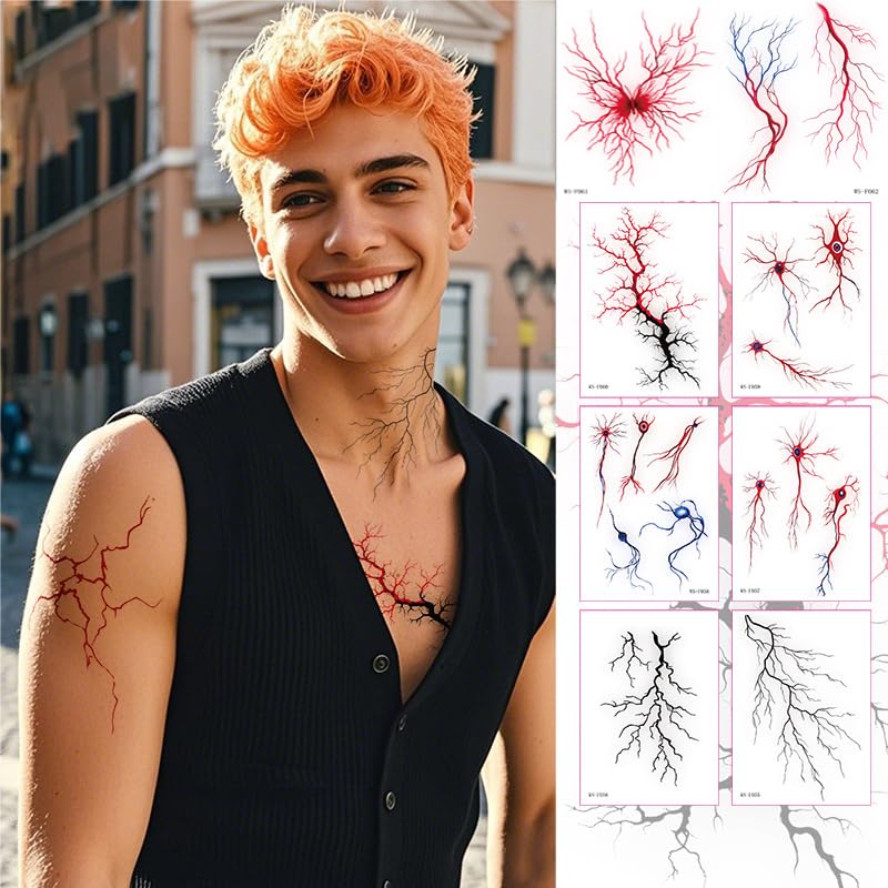 Design: This sticker uses the shape and color of blood vessels and wounds to look super realistic, you can customize the tattoo style you want, delicate tattoo stickers will bloom your charm and make you stand out in the crow