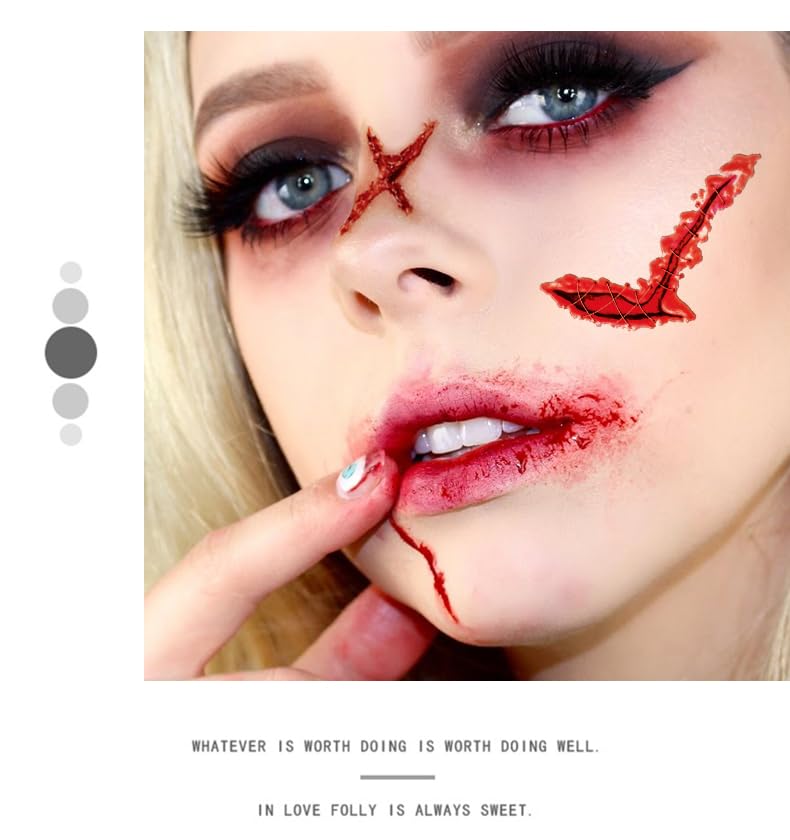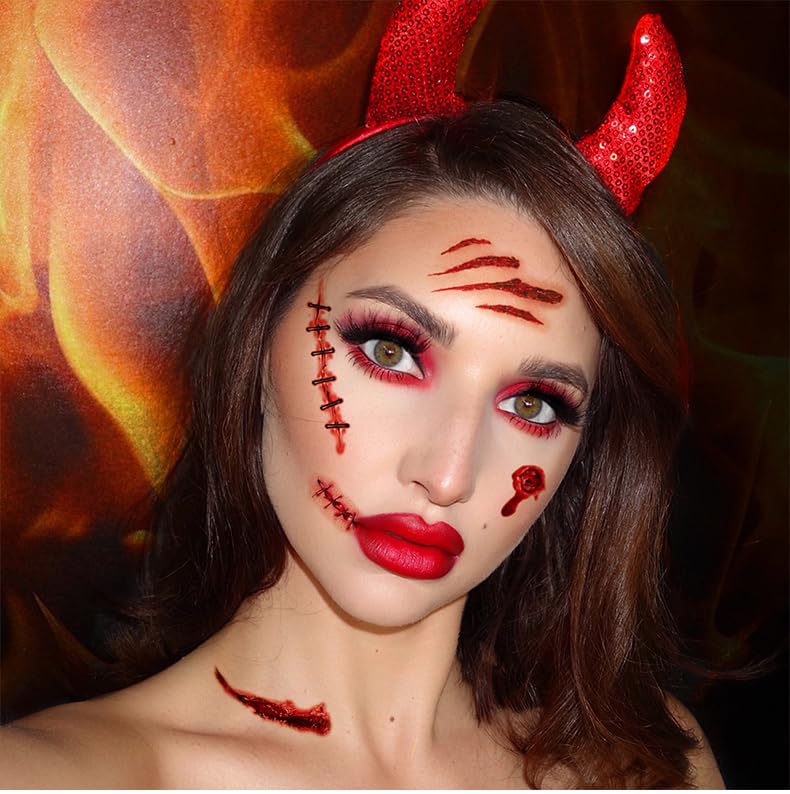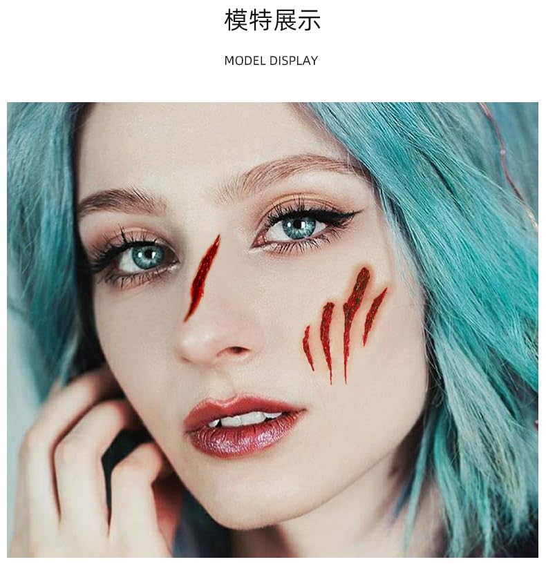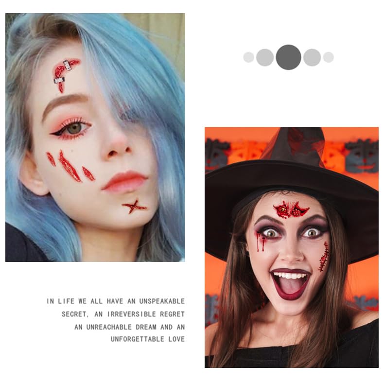 Practical and safe: Our Halloween Scar Tattoos Stickers Waterproof, safe, gentle, non-irritating to the skin, suitable for people over 3 years old. Face, chest, neck, arms, legs any part you like.