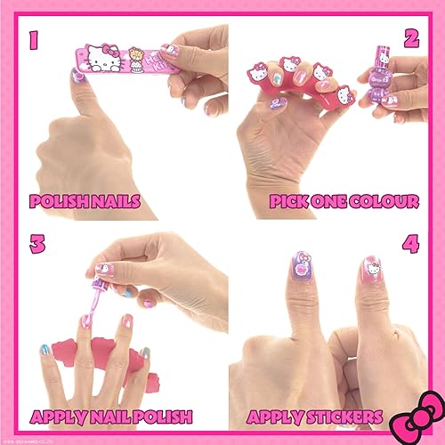 SET INCLUDES: Indulge in beauty magic with our Hello Kitty - shaped case boasting a light - up vanity mirror. Inside, there are 6 charming, peelable nail polish bottles in appealing colors: peach, teal, purple, blue, violet, and pink. 8 shimmering eyeshadow wells in nude, teal, orange, light pink, purple, red, blue, and dark pink hues. 3 blush wells in pink, purple, and nude. 4 plant - based lip glosses in pink, blue, rose, and purple, each with fun 3D toppers, are included. Completing the set are 3 brushes, 2 toe spacers, a nail sticker sheet, and a nail file.