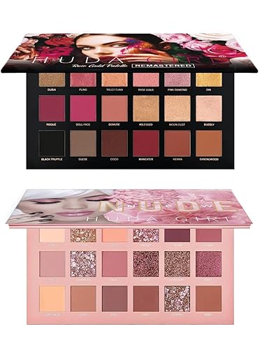 Elevate Your Eye Game: Unleash your creativity with the HUDA GIRL Beauty Rose Gold Remastered + Nude Edition Eyeshadow Palette Combo Kit, featuring 36 matte and shimmer finishes that encompass all colors and styles.