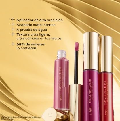 TECHNOLOGY AND INGREDIENTS THAT CARE FOR MY SKIN: Experience the next level of lip care with Infini Absolu liquid lipstick, which combines 9X hyaluronic acid* with plumping peptides for deep hydration: Hyaluronic Acid: Delivers intense hydration to the deepest layers of your lips for soft, nourished lips**. Plumping peptides: Restores natural lip volume. *Amount of hyaluronic acid vs. previous Infini lipstick formula. **Instrumental efficacy test in Brazil, 2024.