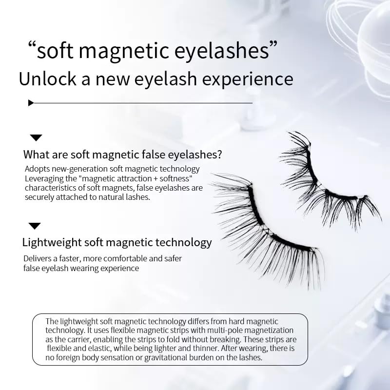 Magnetic Eyelashes 1 Pair Reusable Magnetic Eyelashes with Applicator No Glue Needed Eyelashes Cat Eye Natural Look Lash Clusters Kit Easy to Wear and Remove